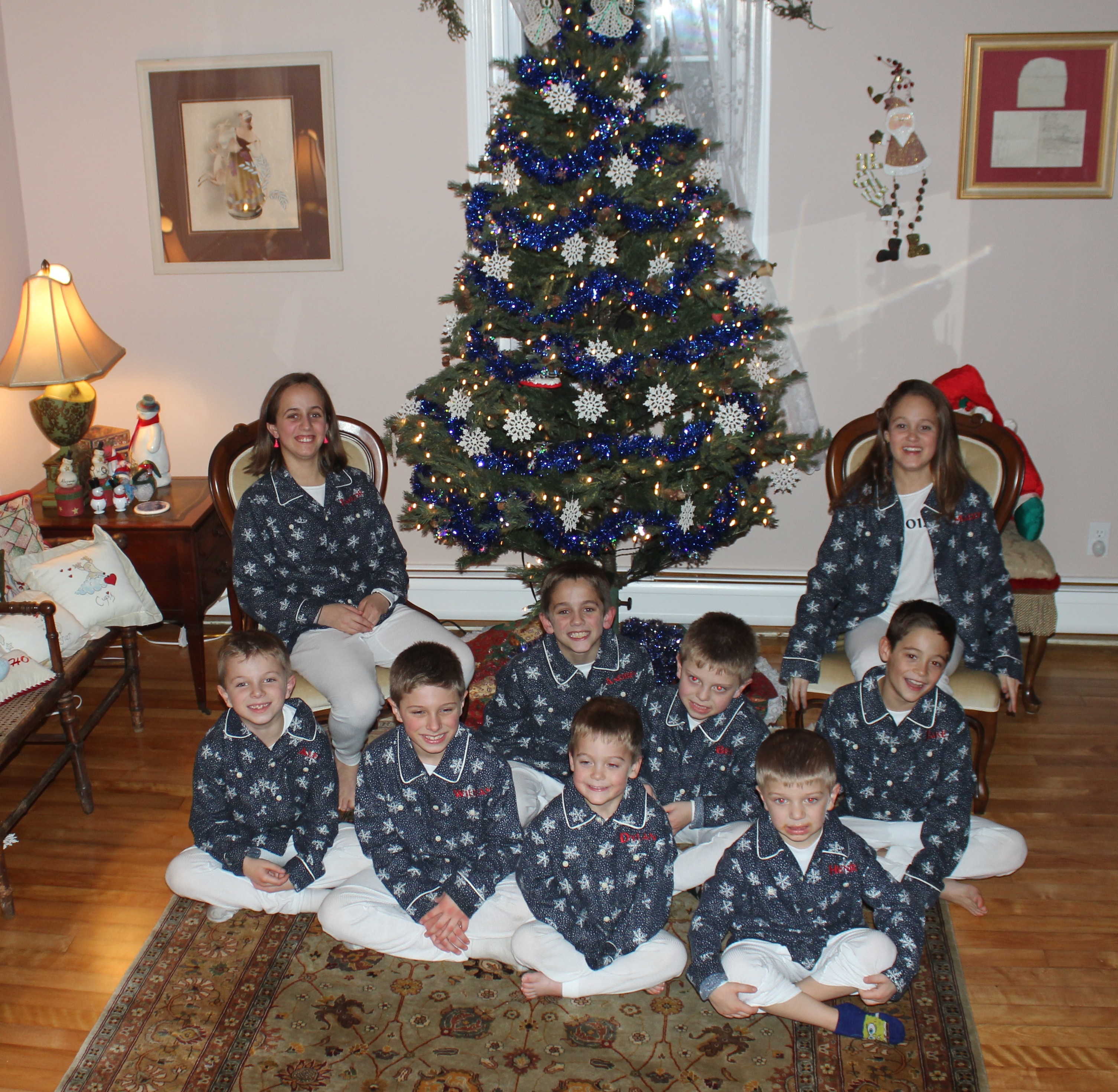 A Family Tradition began; well, actually 2 Family Traditions began – Matching Monogrammed Pajamas and The Christmas Spectacular each Christmas season since. That would be 9 seasons with now 9 grandkids!