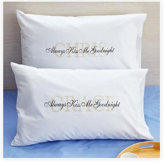 9) Personalized Always Kiss Me Goodnight Pillowcase – Set of 2