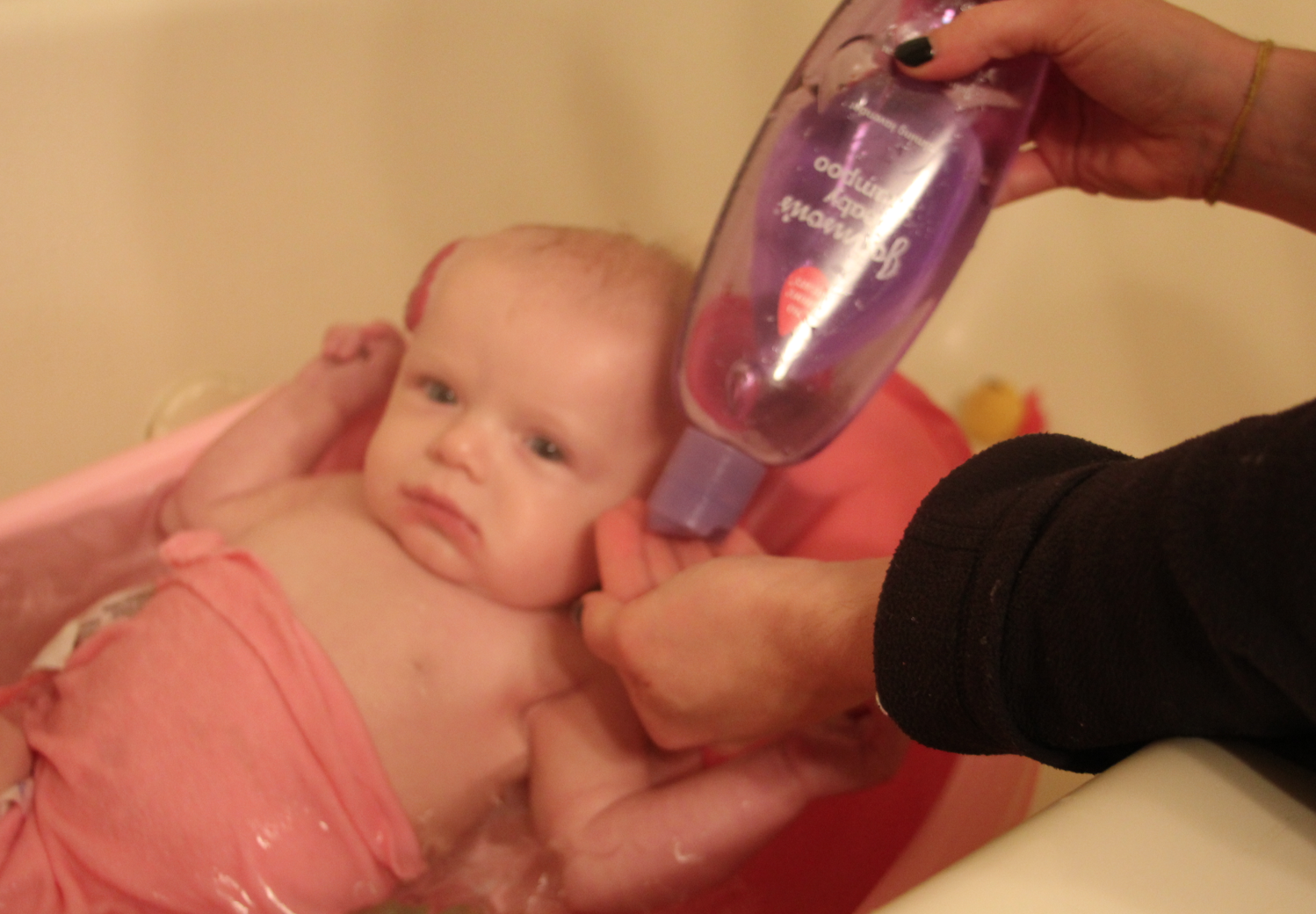 Victoria gets a tubby every night. It’s part of our bedtime ritual. We use JOHNSON’S Baby washes, shampoo and lotion… it’s our JOHNSON’S Baby three-step bedtime routine before bed.